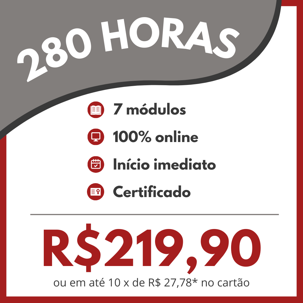 A duração do curso pode variar de acordo com a disponibilidade de cada aluno para estudar. Todo o conteúdo é liberado automaticamente após a inscrição, permitindo que você acesse as aulas no seu próprio ritmo, de acordo com sua rotina. Não há prazos rígidos para assistir às aulas, mas lembre-se: o certificado deve ser solicitado dentro de até 1 ano após a matrícula.